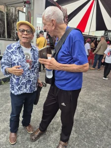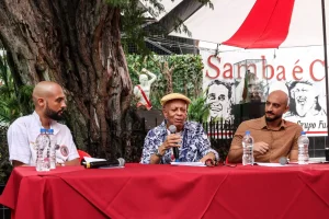 Em seguida, Nei fez uma brilhante fala em mesa coordenada por Gabriel Capella, que contou com a participação do coordenador do Centro de Memória, Walter Pereira. No papo, falas sobre o tempo, memória, território e o carnaval. A conversa também contou com a participação do público presente, que pôde formular perguntas aos debatedores. Nei Lopes foi prestigiado pela diretoria do Cacique de Ramos, que compareceu em peso ao evento. Dia do emérito sambista reencontrar parceiros de longa data como Teteu José, Chopp e Milton Manhães.