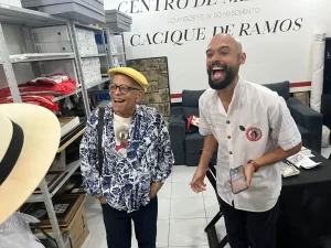 No dia 16 de agosto de 2025, o Cacique de Ramos recepcionou parte das atividades do projeto Palavra Líquida, do Sesc Rio. Segundo a entidade: “O objetivo é explorar as várias formas de escrever e ler o mundo, criando uma plateia diversificada que se conecta com questões contemporâneas e com as diferentes maneiras de produzir e viver a literatura.” Dessa forma, fomos honrados com uma dupla programação. Primeiro, um passeio por alguns pontos de Ramos ligados à história do Cacique, conduzido pelo guia de turismo e turismólogo Gabriel Capella, com grupo selecionado pelo próprio Sesc, que culminou em nossa quadra.